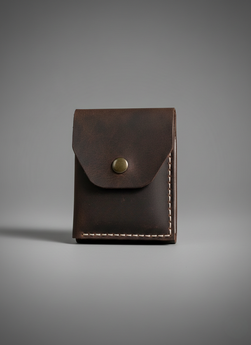 Cepte varlığını unutturacak kadar ince tasarlandı; buna rağmen kartlar ve nakit için sağlam bir kapasite sunar. Ön cep taşımaya ve minimalist kullanım tercih edenlere özellikle uygundur. Deri, zamanla taşıdıklarına göre form alır; kullandıkça oturur ve daha da iyi bir his verir.